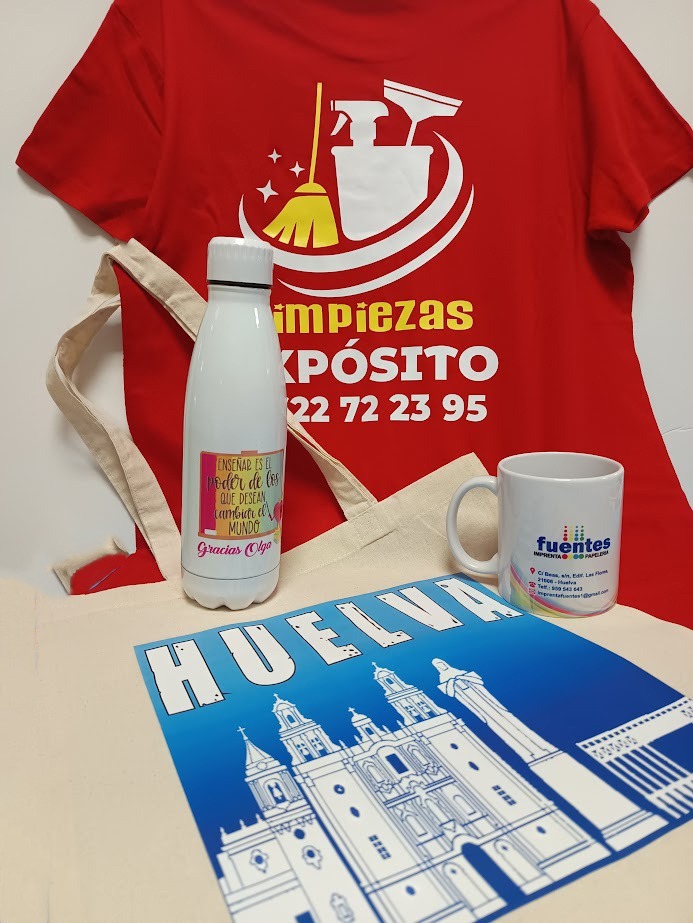 Dale un toque único a tus artículos promocionales con nuestra impresión personalizada en camisetas, tazas, botellas, bolsas tote bag y más. Imprenta Fuentes es tu aliado en la creación de regalos corporativos y materiales promocionales que reflejan tu marca.